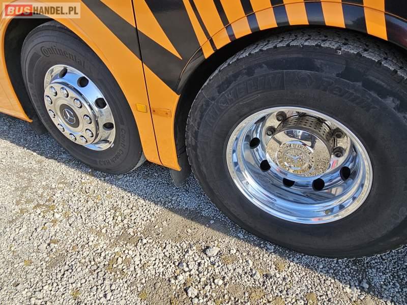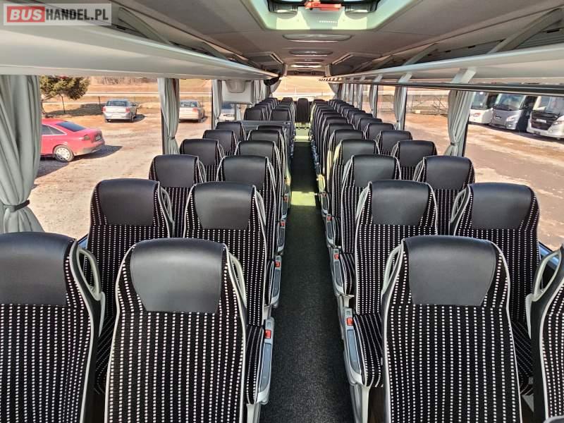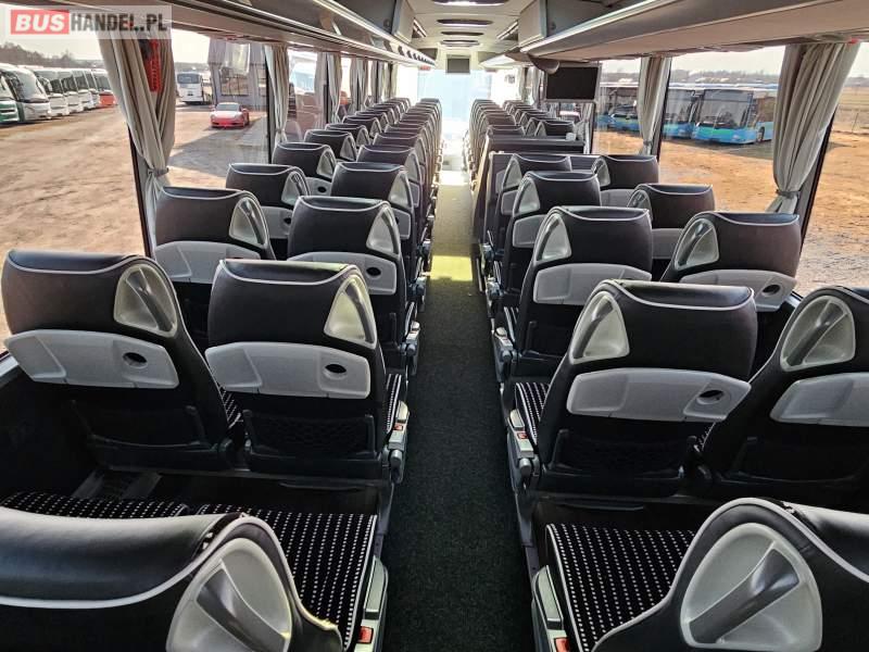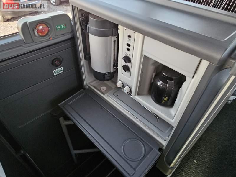 : klimatyzacja, video, WC, lodówka, caffebar, kabina sypialna, oświetlenie indywidualne, nawiewy dyszowe, podnóżki, stoliczki, siateczki, ABS, ASR, tempomat, retarder, CD, mikrofon, radio, fotele odchylane i rozsuwane, sejf, regulacja wysokości nadwozia, centralny zamek, podwójne szyby boczne, wspomaganie kierownicy, aluminiowe felgi, elektryczne lusterka, ogrzewanie stacjonarne, DVD, hak holowniczy, ESP