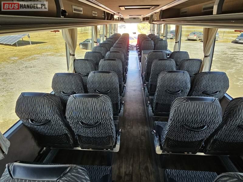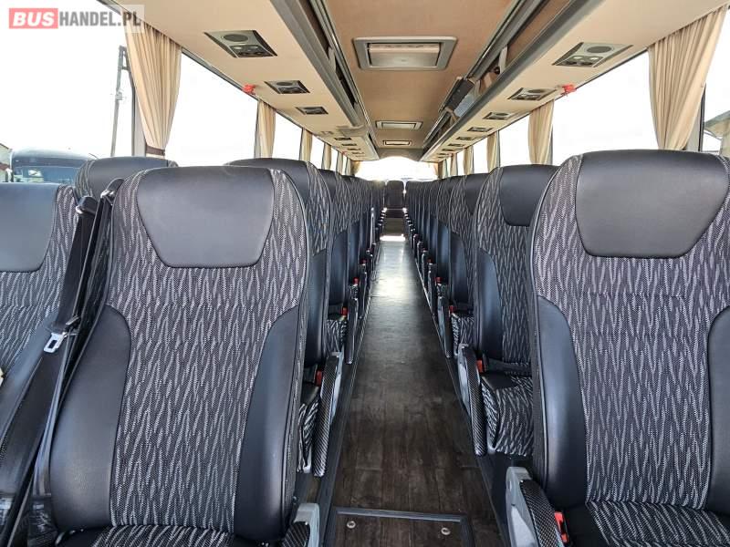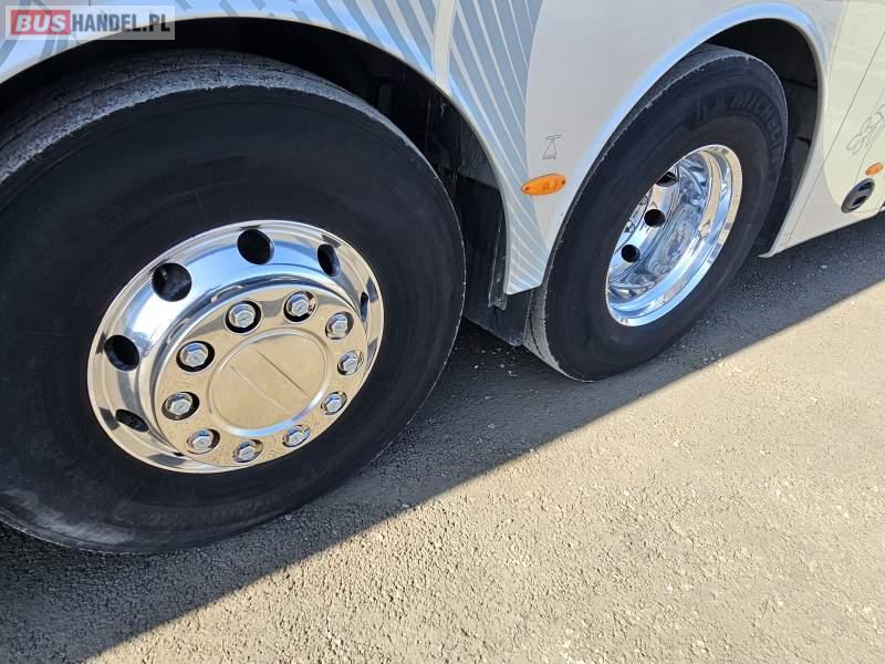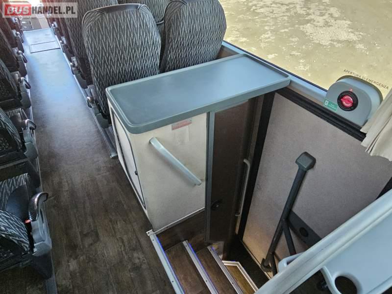 : video, WC, lodówka, caffebar, kabina sypialna, oświetlenie indywidualne, nawiewy dyszowe, siateczki, ABS, ASR, tempomat, retarder, CD, podnóżki, mikrofon, klimatyzacja, radio, sejf, regulacja wysokości nadwozia, centralny zamek, podwójne szyby boczne, wspomaganie kierownicy, elektryczne lusterka, aluminiowe felgi, fotele odchylane i rozsuwane, DVD, ogrzewanie stacjonarne, ESP