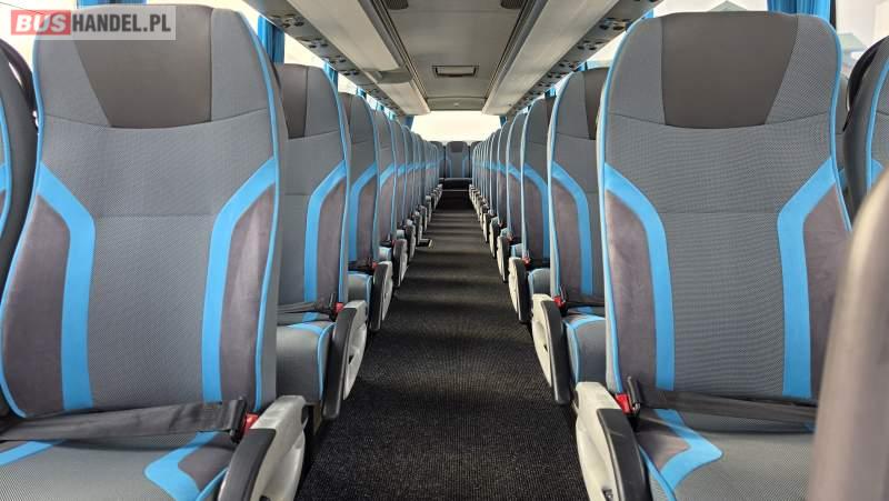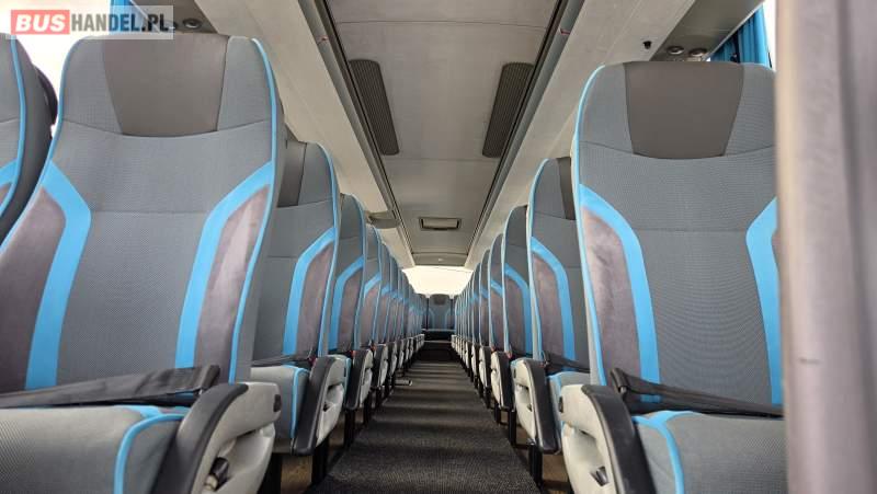: video, lodówka, kabina sypialna, oświetlenie indywidualne, nawiewy dyszowe, siateczki, ABS, ASR, tempomat, retarder, CD, podnóżki, stoliczki, mikrofon, klimatyzacja, radio, sejf, regulacja wysokości nadwozia, centralny zamek, podwójne szyby boczne, wspomaganie kierownicy, elektryczne lusterka, aluminiowe felgi, fotele odchylane i rozsuwane, DVD, ogrzewanie stacjonarne, ESP