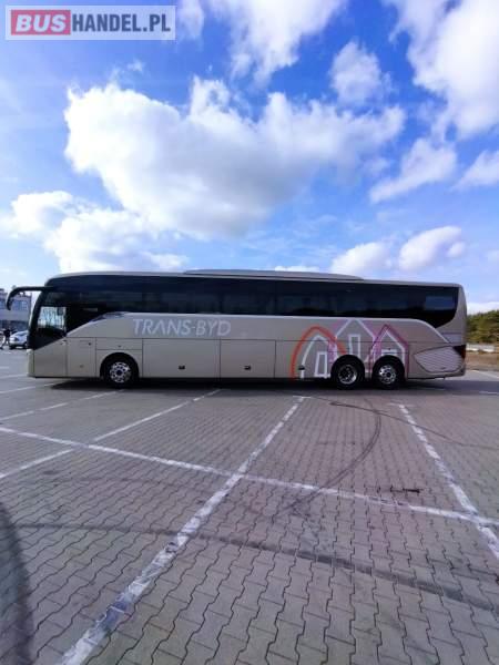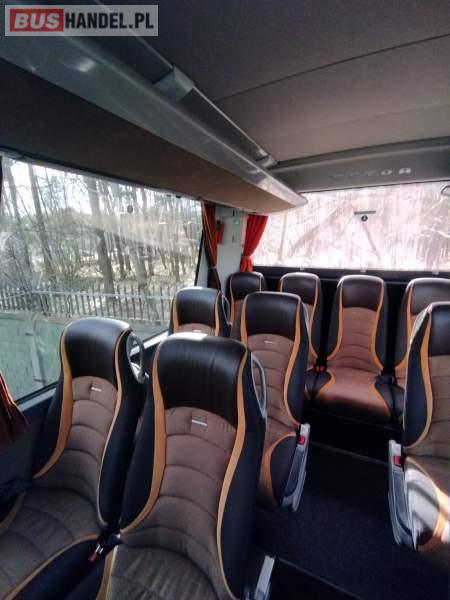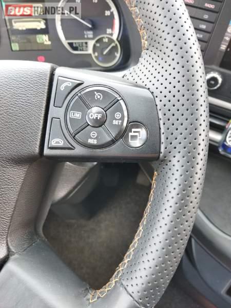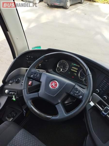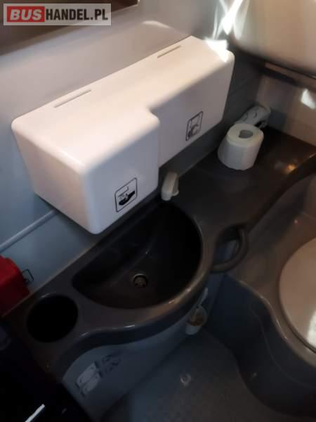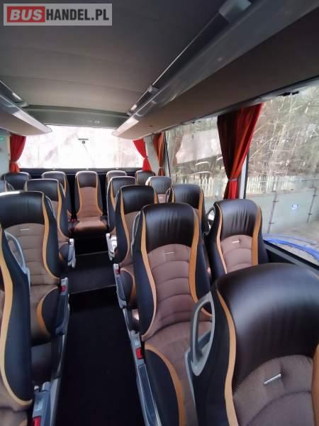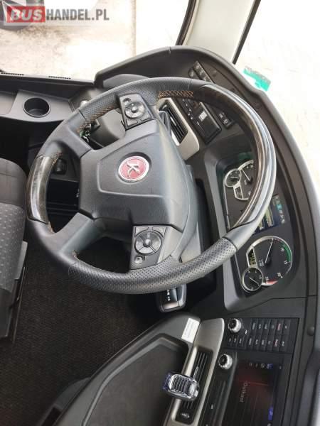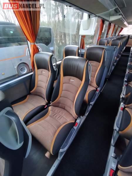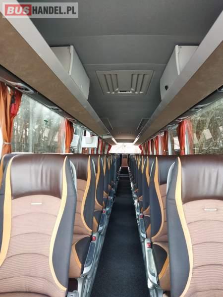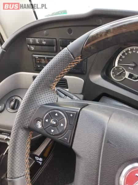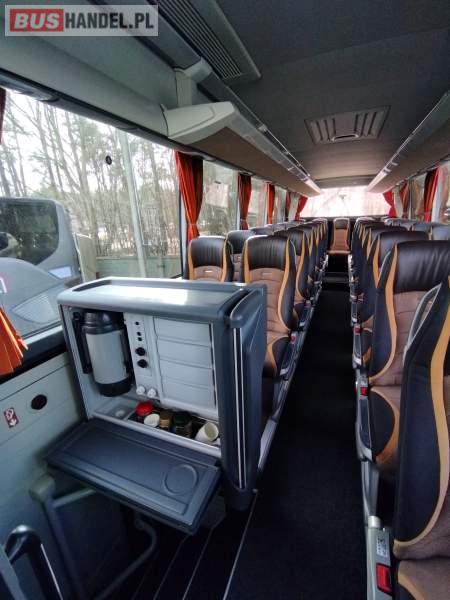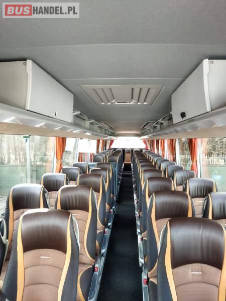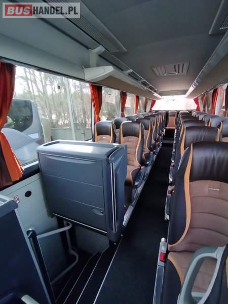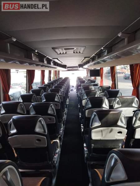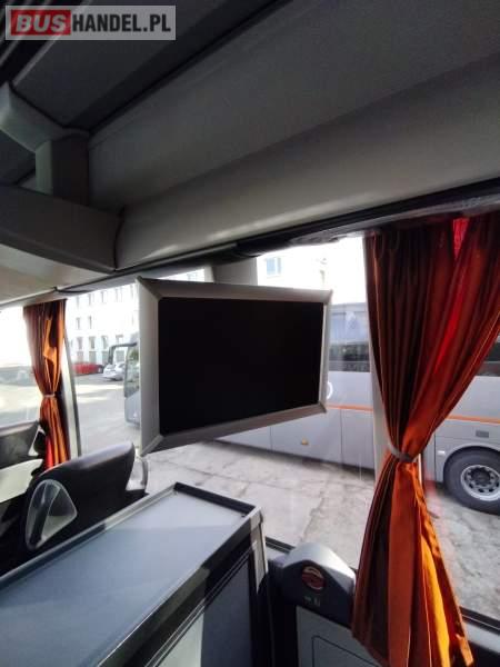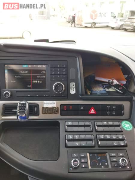 : video, WC, lodówka, caffebar, kabina sypialna, fotele odchylane, oświetlenie indywidualne, nawiewy dyszowe, siateczki, ABS, ASR, tempomat, retarder, nawigacja, CD, podnóżki, stoliczki, mikrofon, klimatyzacja, radio, sejf, regulacja wysokości nadwozia, centralny zamek, podwójne szyby boczne, wspomaganie kierownicy, elektryczne lusterka, aluminiowe felgi, fotele odchylane i rozsuwane, DVD, ogrzewanie stacjonarne, ESP