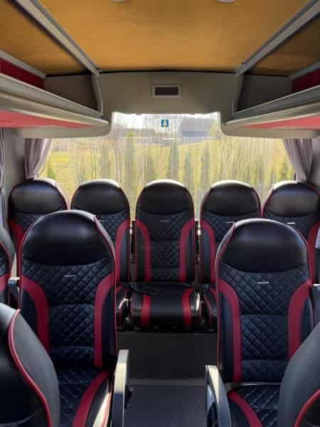 : WC, kabina sypialna, fotele odchylane, oświetlenie indywidualne, nawiewy dyszowe, tempomat, retarder, mikrofon, klimatyzacja, regulacja wysokości nadwozia, podwójne szyby boczne, elektryczne lusterka
