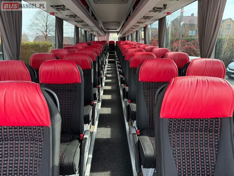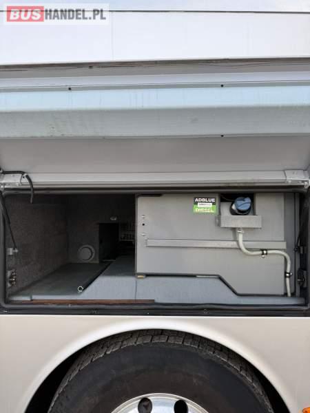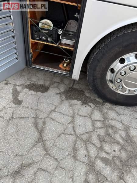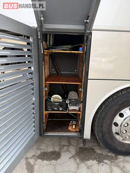 : WC, lodówka, caffebar, kabina sypialna, fotele odchylane, oświetlenie indywidualne, nawiewy dyszowe, siateczki, ABS, ASR, tempomat, retarder, telefon, podnóżki, stoliczki, mikrofon, klimatyzacja, radio, sejf, regulacja wysokości nadwozia, centralny zamek, podwójne szyby boczne, wspomaganie kierownicy, elektryczne lusterka, aluminiowe felgi, fotele odchylane i rozsuwane, DVD, ogrzewanie stacjonarne, ESP
