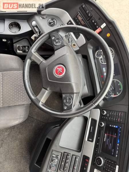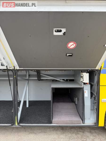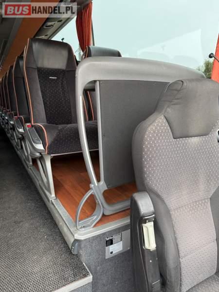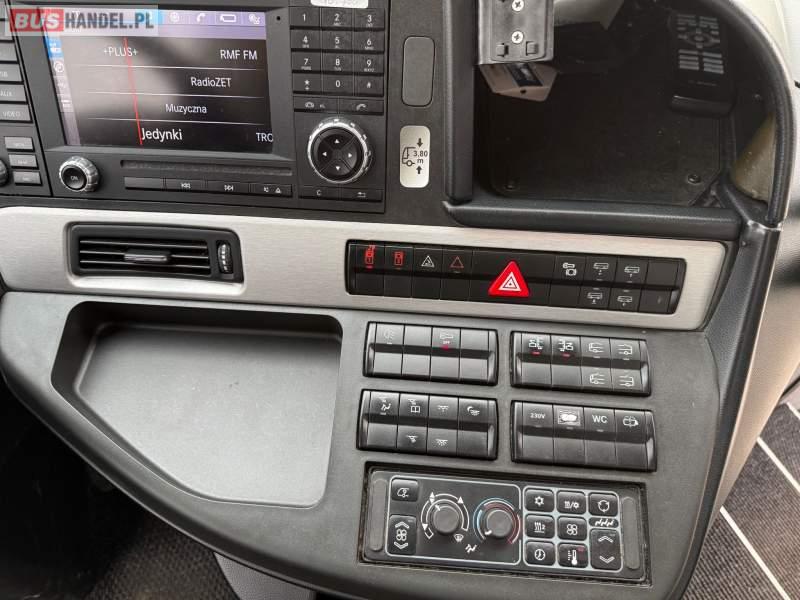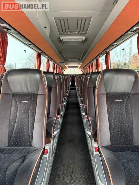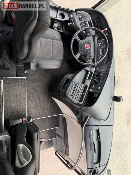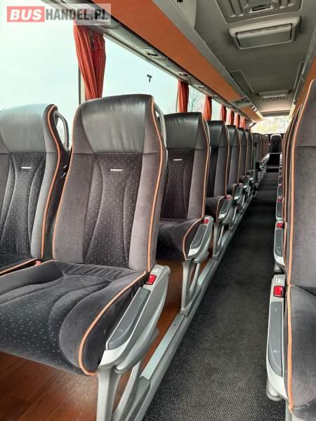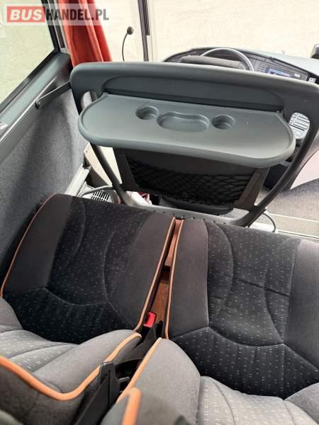 : WC, lodówka, caffebar, kabina sypialna, oświetlenie indywidualne, nawiewy dyszowe, siateczki, ABS, ASR, tempomat, retarder, podnóżki, stoliczki, mikrofon, klimatyzacja, radio, sejf, regulacja wysokości nadwozia, centralny zamek, podwójne szyby boczne, wspomaganie kierownicy, elektryczne lusterka, fotele odchylane i rozsuwane, DVD, ogrzewanie stacjonarne, ESP