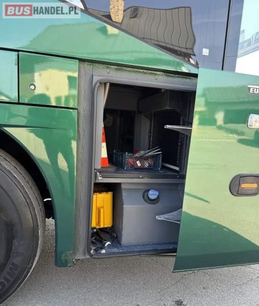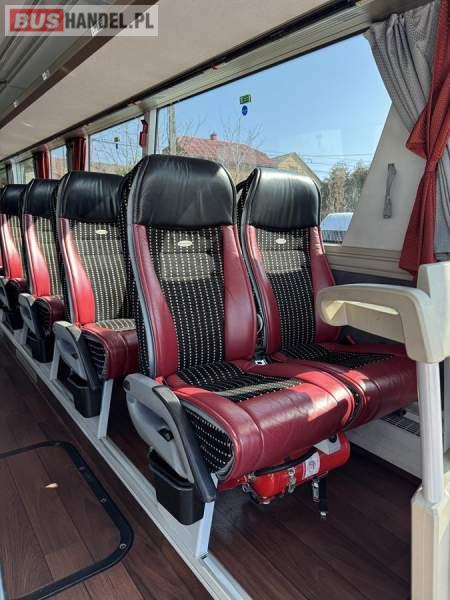 : WC, lodówka, caffebar, fotele odchylane, oświetlenie indywidualne, nawiewy dyszowe, siateczki, ABS, ASR, tempomat, retarder, CD, podnóżki, stoliczki, mikrofon, klimatyzacja, radio, regulacja wysokości nadwozia, centralny zamek, podwójne szyby boczne, wspomaganie kierownicy, elektryczne lusterka, DVD, ogrzewanie stacjonarne, hak holowniczy, ESP