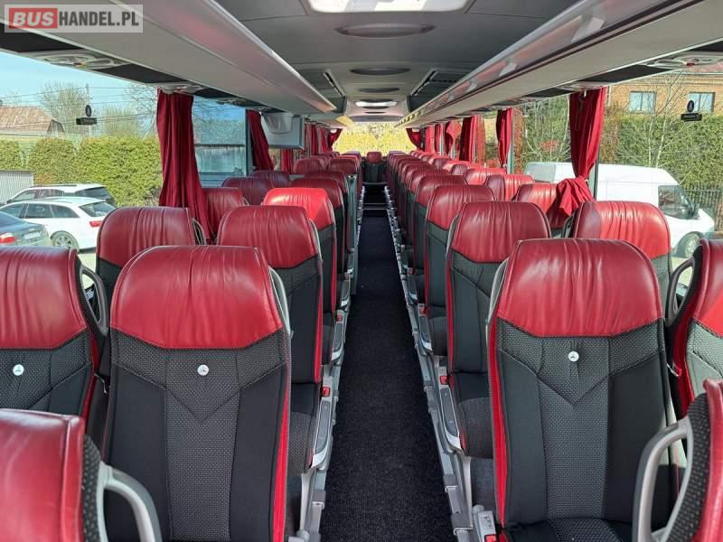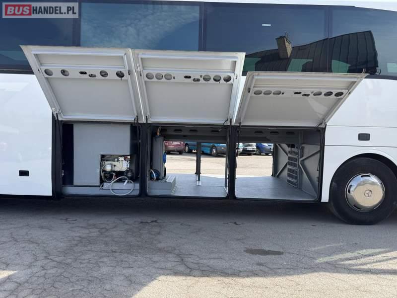 : WC, lodówka, kabina sypialna, fotele odchylane, oświetlenie indywidualne, nawiewy dyszowe, siateczki, ABS, ASR, tempomat, retarder, CD, podnóżki, stoliczki, mikrofon, klimatyzacja, radio, sejf, regulacja wysokości nadwozia, centralny zamek, podwójne szyby boczne, wspomaganie kierownicy, elektryczne lusterka, DVD, ogrzewanie stacjonarne, ESP