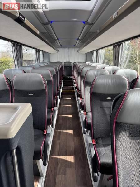 : WC, lodówka, caffebar, fotele odchylane, oświetlenie indywidualne, nawiewy dyszowe, siateczki, ABS, ASR, tempomat, retarder, nawigacja, CD, podnóżki, stoliczki, mikrofon, klimatyzacja, radio, sejf, regulacja wysokości nadwozia, centralny zamek, podwójne szyby boczne, wspomaganie kierownicy, elektryczne lusterka, DVD, ogrzewanie stacjonarne, ESP