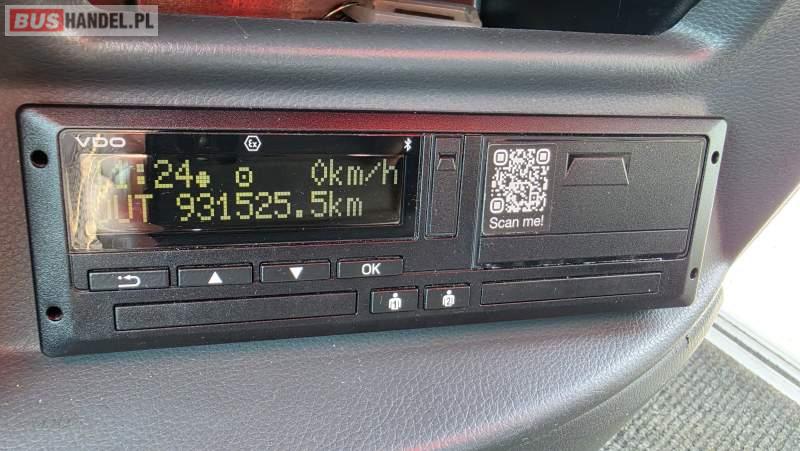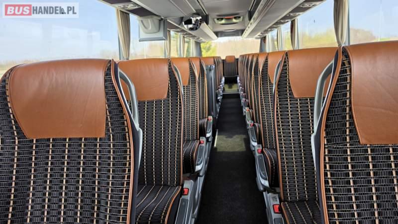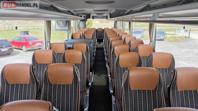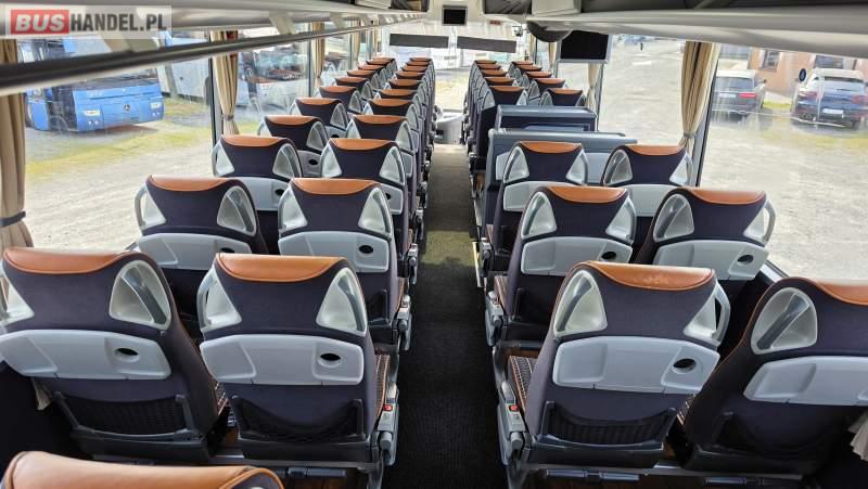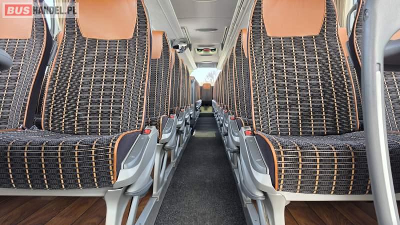 : video, WC, lodówka, caffebar, kabina sypialna, oświetlenie indywidualne, nawiewy dyszowe, siateczki, ABS, retarder, CD, podnóżki, stoliczki, mikrofon, klimatyzacja, radio, sejf, regulacja wysokości nadwozia, centralny zamek, podwójne szyby boczne, wspomaganie kierownicy, elektryczne lusterka, fotele odchylane i rozsuwane, DVD, ogrzewanie stacjonarne, ESP
