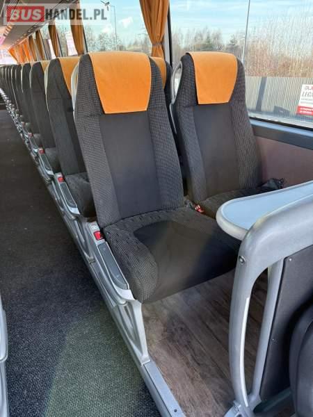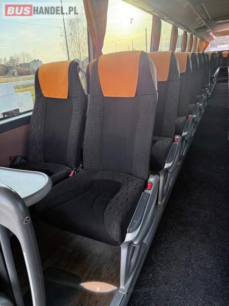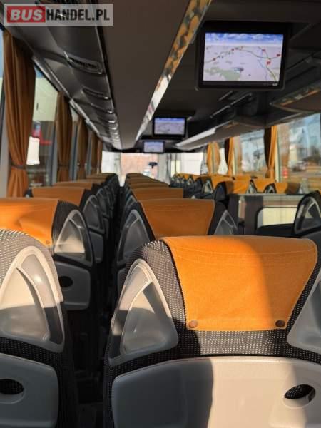: video, WC, lodówka, caffebar, kabina sypialna, fotele odchylane, oświetlenie indywidualne, nawiewy dyszowe, siateczki, ABS, ASR, tempomat, retarder, telefon, nawigacja, CD, podnóżki, stoliczki, mikrofon, klimatyzacja, radio, kuchenka mikrofalowa, wyświetlacz matrix, sejf, regulacja wysokości nadwozia, centralny zamek, podwójne szyby boczne, wspomaganie kierownicy, elektryczne lusterka, fotele odchylane i rozsuwane, DVD, ogrzewanie stacjonarne, hak holowniczy, ESP