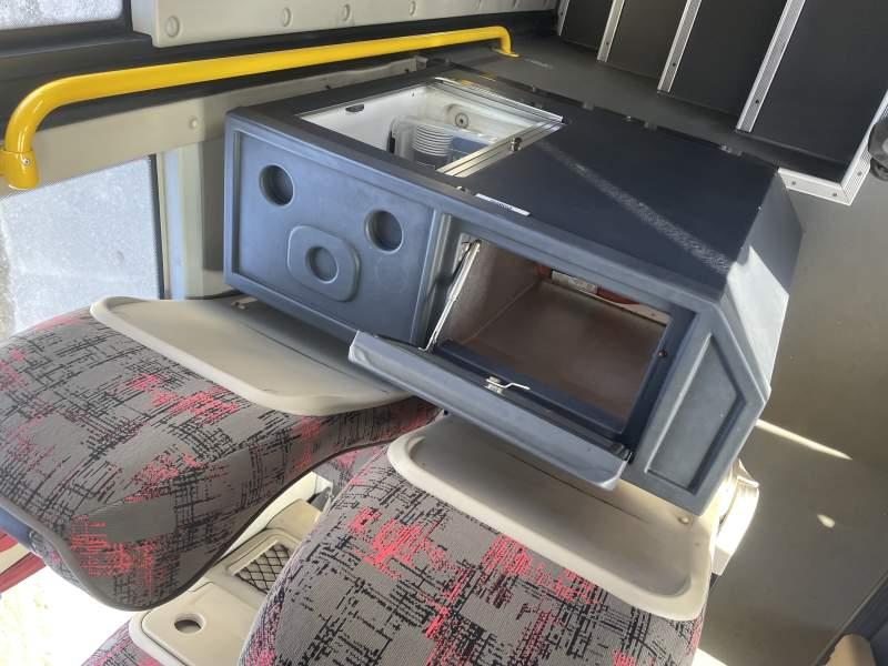 : lodówka, oświetlenie indywidualne, nawiewy dyszowe, siateczki, ABS, ASR, mikrofon, klimatyzacja, podwójne szyby boczne, wspomaganie kierownicy, fotele odchylane i rozsuwane, ogrzewanie stacjonarne