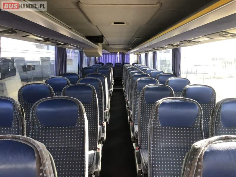 : video, WC, lodówka, caffebar, kabina sypialna, oświetlenie indywidualne, nawiewy dyszowe, siateczki, ABS, ASR, tempomat, retarder, CD, podnóżki, mikrofon, klimatyzacja, radio, sejf, regulacja wysokości nadwozia, podwójne szyby boczne, wspomaganie kierownicy, elektryczne lusterka, aluminiowe felgi, fotele odchylane i rozsuwane, DVD, ogrzewanie stacjonarne, hak holowniczy, ESP