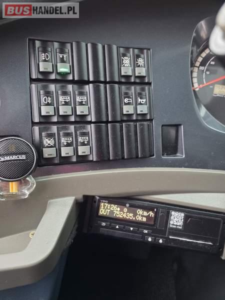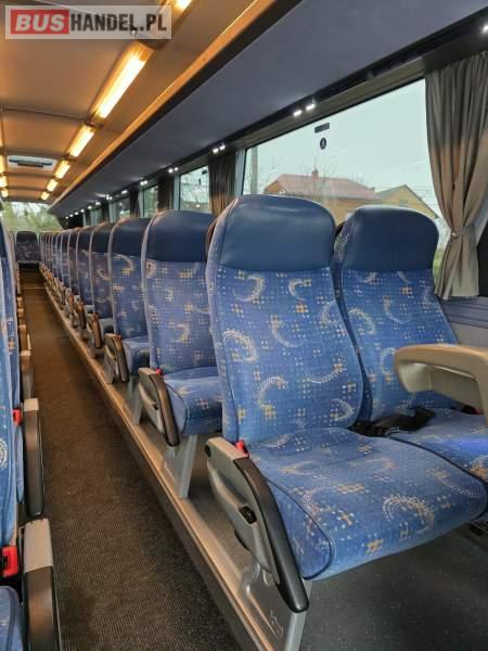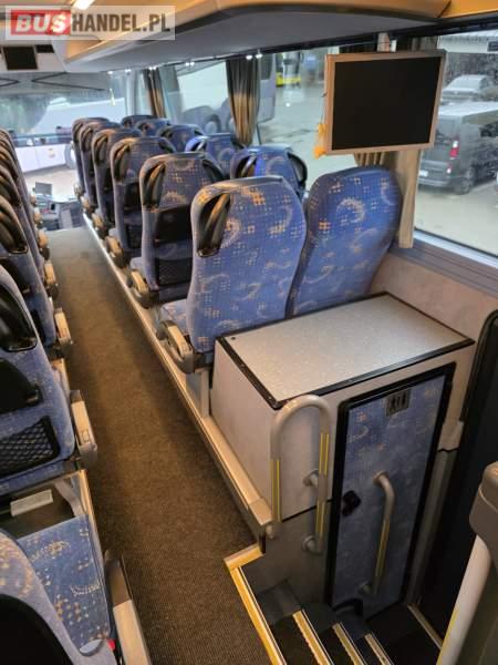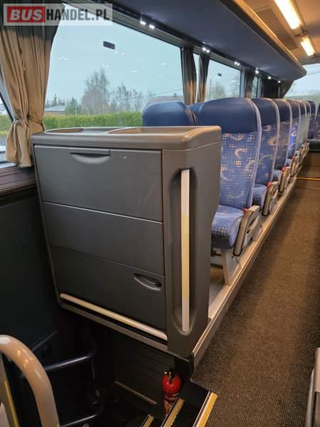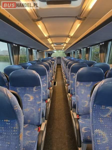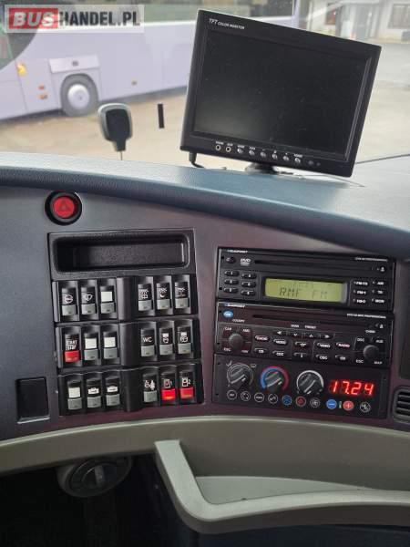 : WC, lodówka, caffebar, kabina sypialna, fotele odchylane, oświetlenie indywidualne, nawiewy dyszowe, siateczki, ABS, ASR, tempomat, retarder, podnóżki, stoliczki, mikrofon, klimatyzacja, radio, regulacja wysokości nadwozia, centralny zamek, podwójne szyby boczne, wspomaganie kierownicy, elektryczne lusterka, fotele odchylane i rozsuwane, DVD, ogrzewanie stacjonarne, ESP