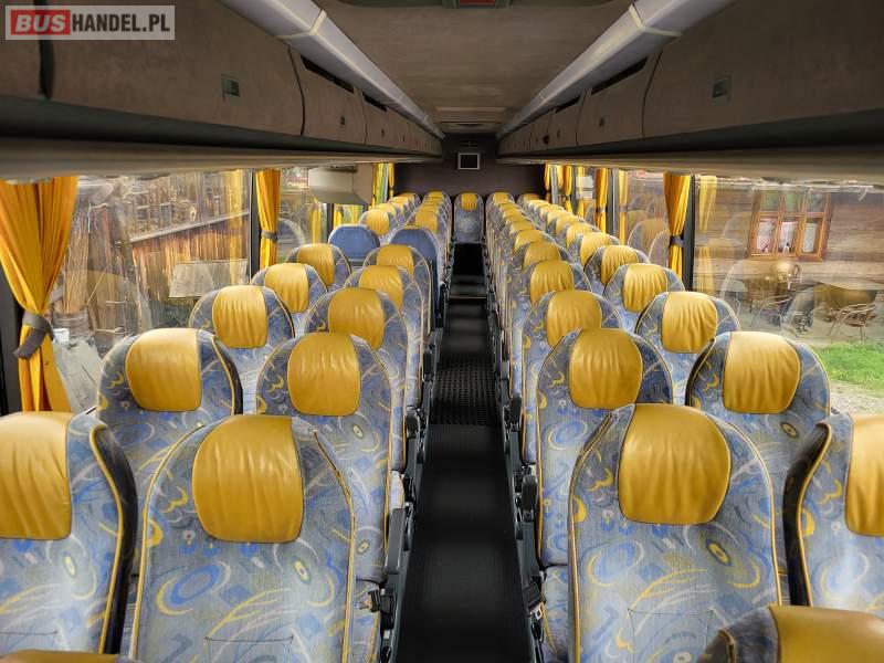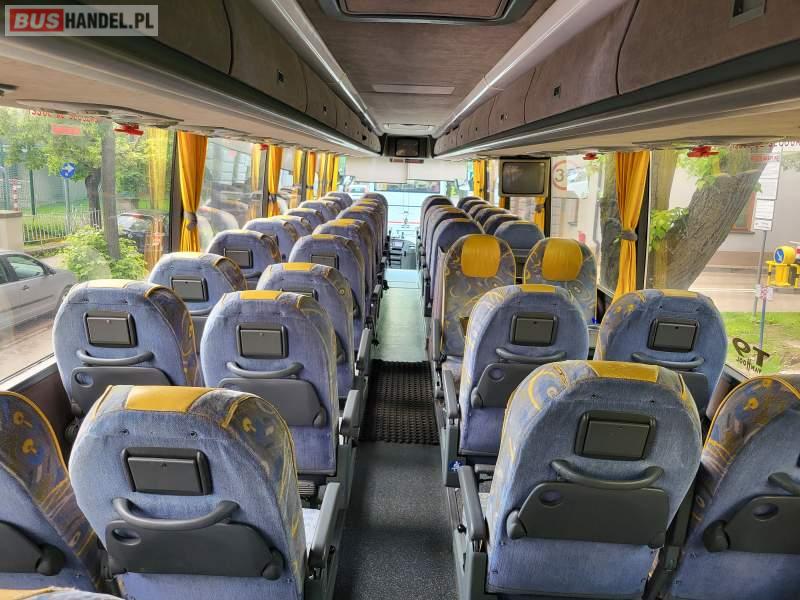 : video, WC, lodówka, kabina sypialna, fotele odchylane, oświetlenie indywidualne, nawiewy dyszowe, siateczki, ABS, ASR, tempomat, retarder, nawigacja, CD, podnóżki, stoliczki, mikrofon, klimatyzacja, radio, wyświetlacz matrix, regulacja wysokości nadwozia, centralny zamek, podwójne szyby boczne, wspomaganie kierownicy, elektryczne lusterka, aluminiowe felgi, DVD, ogrzewanie stacjonarne, ESP