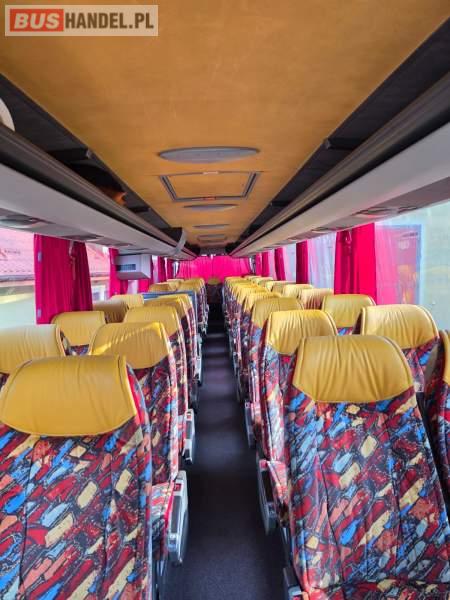 : video, WC, lodówka, caffebar, kabina sypialna, fotele odchylane, oświetlenie indywidualne, nawiewy dyszowe, siateczki, ABS, ASR, tempomat, retarder, CD, podnóżki, stoliczki, mikrofon, klimatyzacja, radio, regulacja wysokości nadwozia, centralny zamek, podwójne szyby boczne, wspomaganie kierownicy, elektryczne lusterka, DVD, ogrzewanie stacjonarne, hak holowniczy, ESP