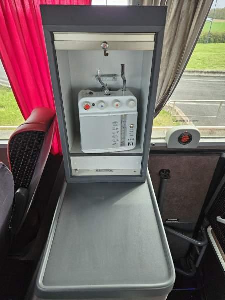 : video, WC, lodówka, caffebar, kabina sypialna, fotele odchylane, oświetlenie indywidualne, nawiewy dyszowe, siateczki, ABS, ASR, tempomat, retarder, CD, podnóżki, stoliczki, mikrofon, klimatyzacja, radio, rampa dla inwalidów, regulacja wysokości nadwozia, centralny zamek, podwójne szyby boczne, wspomaganie kierownicy, elektryczne lusterka, aluminiowe felgi, DVD, ogrzewanie stacjonarne, hak holowniczy, ESP
