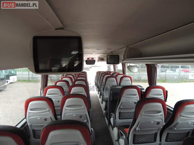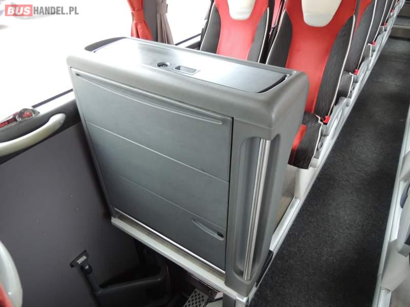 : video, WC, lodówka, caffebar, kabina sypialna, oświetlenie indywidualne, nawiewy dyszowe, siateczki, ABS, ASR, tempomat, retarder, CD, podnóżki, stoliczki, klimatyzacja, radio, rampa dla inwalidów, regulacja wysokości nadwozia, centralny zamek, podwójne szyby boczne, wspomaganie kierownicy, elektryczne lusterka, aluminiowe felgi, fotele odchylane i rozsuwane, DVD, ogrzewanie stacjonarne, ESP