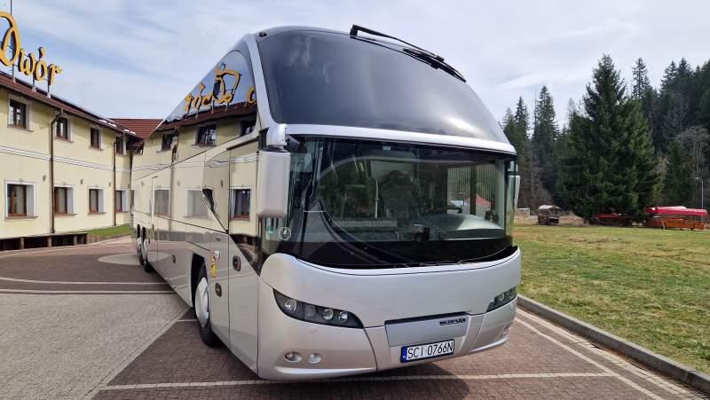 *** Na sprzedaż bardzo zadbany i mocno doinwestowany autokar Neoplan Cityliner L * Rok produkcji: 2018 * Ilość miejsc: 59+2+1 * Oryginalny przebieg: 445 000 km * Automatyczna 12-biegowa skrzynia biegów Autobus bardzo bogato wyposażony: - Xenon - Aktywny tempomat - Ogrzewana toaleta - Trzy monitory - Lodówka - Duża przetwornica 220V - Dodatkowe rozruchowe akumulatory - Gniazdka USB do ładowania dla pasażerów - Kamera cofania - Kamera na środkowe wejście - WC - Oryginalne ciemne szyby Autobus absolutnie niewymagający nakładów finansowych - gotowy do dalszej eksploatacji!!! Historia serwisowa w MAN do 399 000 km (łącznie z akcją serwisową na wymianę panewek) Po więcej informacji zapraszam do kontaktu telefonicznego Sprzedający: