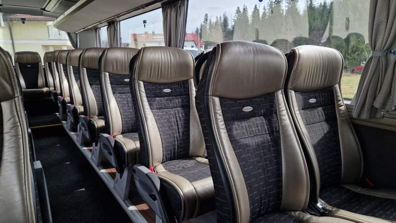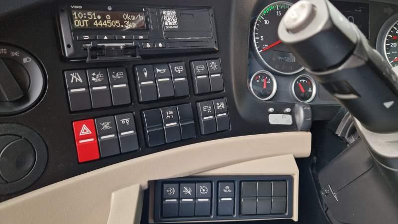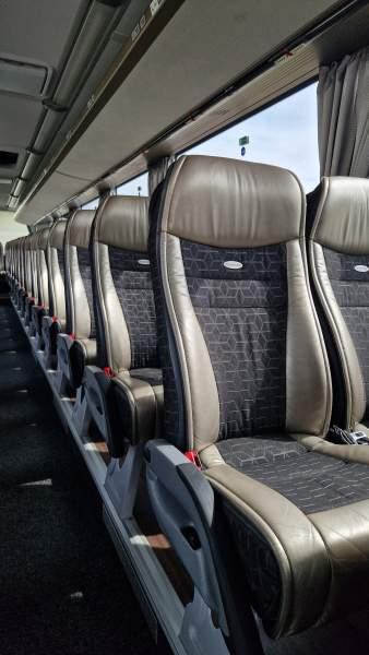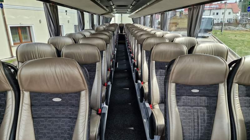 : video, WC, lodówka, caffebar, kabina sypialna, fotele odchylane, oświetlenie indywidualne, nawiewy dyszowe, siateczki, ABS, ASR, tempomat, retarder, telefon, nawigacja, CD, podnóżki, stoliczki, mikrofon, klimatyzacja, radio, regulacja wysokości nadwozia, centralny zamek, podwójne szyby boczne, wspomaganie kierownicy, elektryczne lusterka, fotele odchylane i rozsuwane, DVD, ogrzewanie stacjonarne, hak holowniczy, ESP