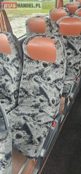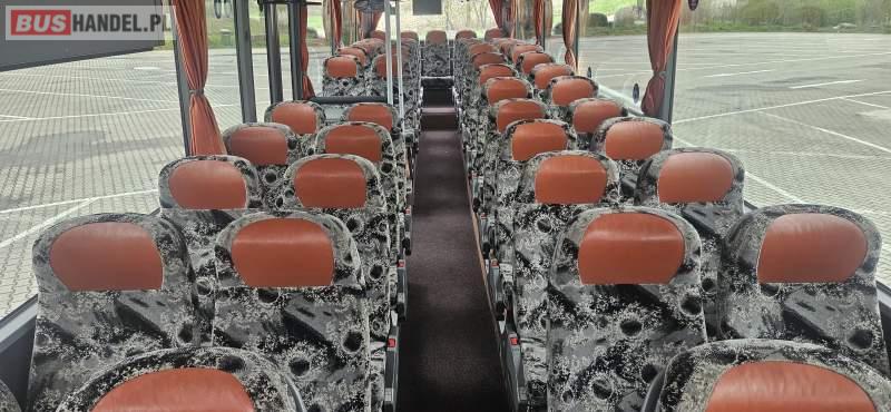 : lodówka, fotele odchylane, oświetlenie indywidualne, nawiewy dyszowe, siateczki, ABS, ASR, tempomat, retarder, stoliczki, mikrofon, radio, regulacja wysokości nadwozia, centralny zamek, podwójne szyby boczne, wspomaganie kierownicy, elektryczne lusterka, ogrzewanie stacjonarne