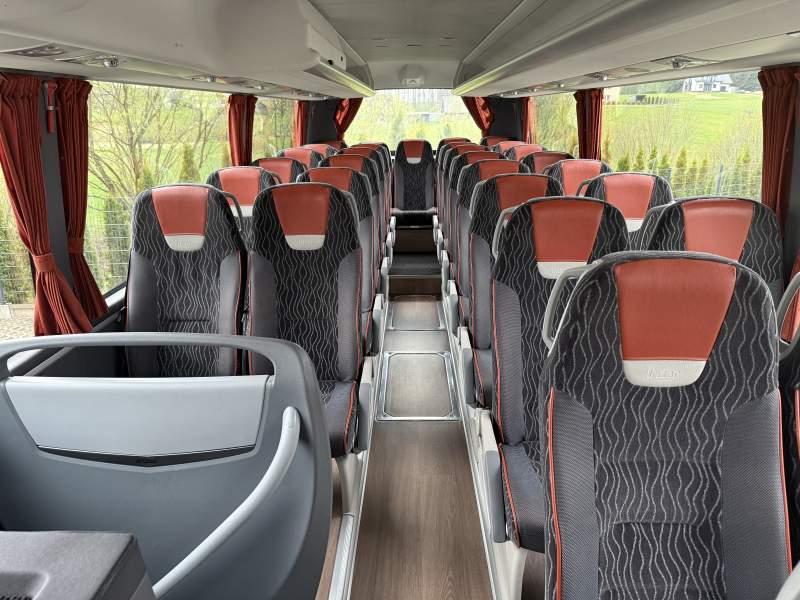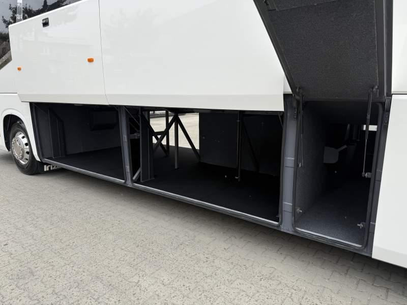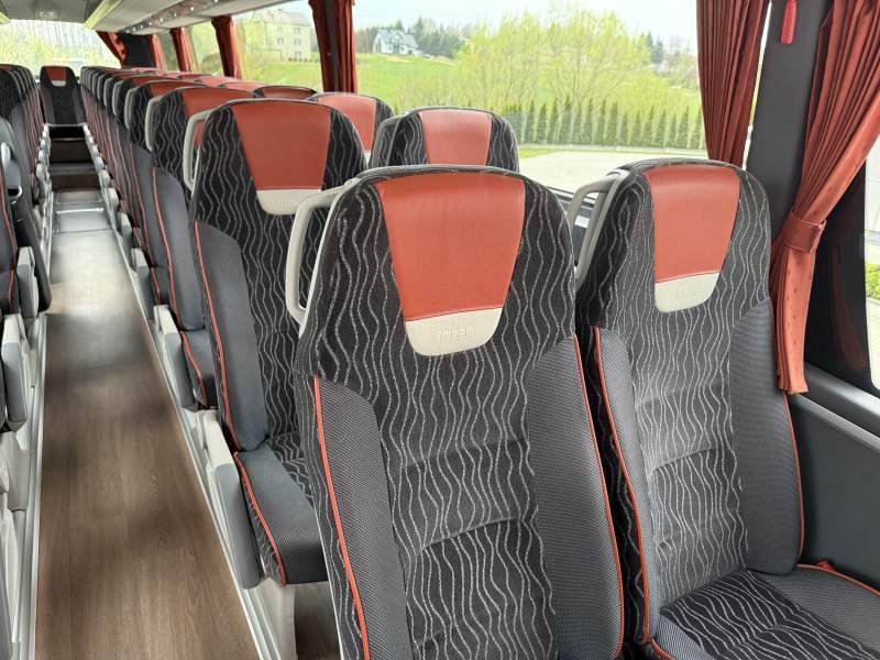 : video, WC, lodówka, kabina sypialna, fotele odchylane, oświetlenie indywidualne, nawiewy dyszowe, siateczki, ABS, ASR, tempomat, retarder, telefon, CD, podnóżki, stoliczki, mikrofon, klimatyzacja, radio, regulacja wysokości nadwozia, centralny zamek, podwójne szyby boczne, wspomaganie kierownicy, elektryczne lusterka, fotele odchylane i rozsuwane, DVD, ogrzewanie stacjonarne, ESP