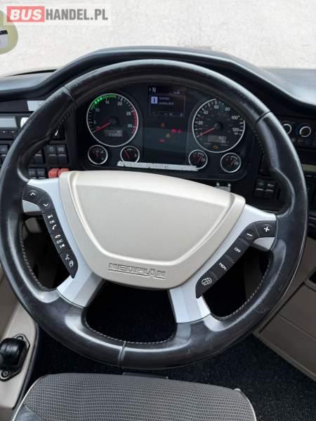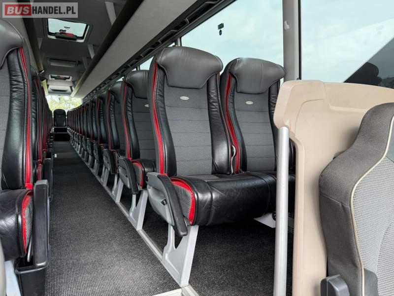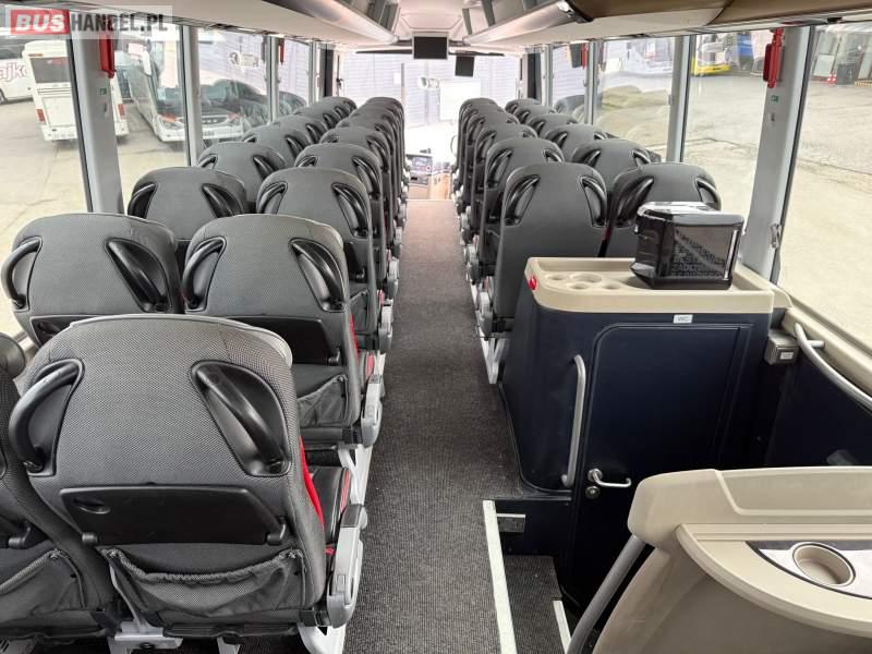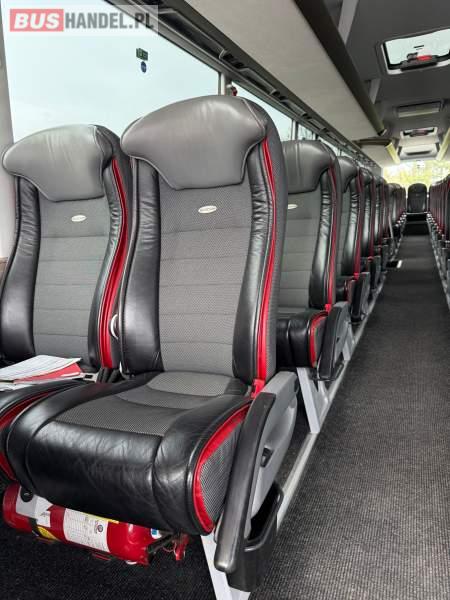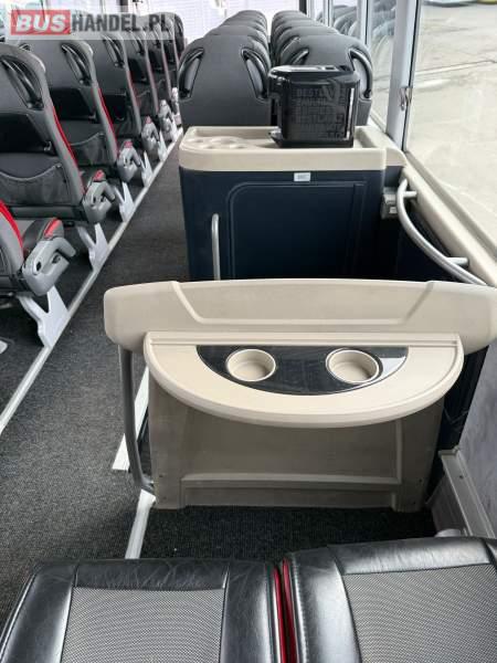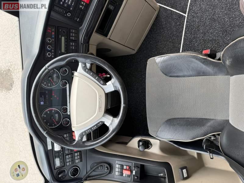 : WC, lodówka, kabina sypialna, fotele odchylane, oświetlenie indywidualne, nawiewy dyszowe, siateczki, ABS, ASR, tempomat, retarder, podnóżki, stoliczki, mikrofon, klimatyzacja, radio, sejf, regulacja wysokości nadwozia, centralny zamek, podwójne szyby boczne, wspomaganie kierownicy, elektryczne lusterka, fotele odchylane i rozsuwane, DVD, ogrzewanie stacjonarne, ESP