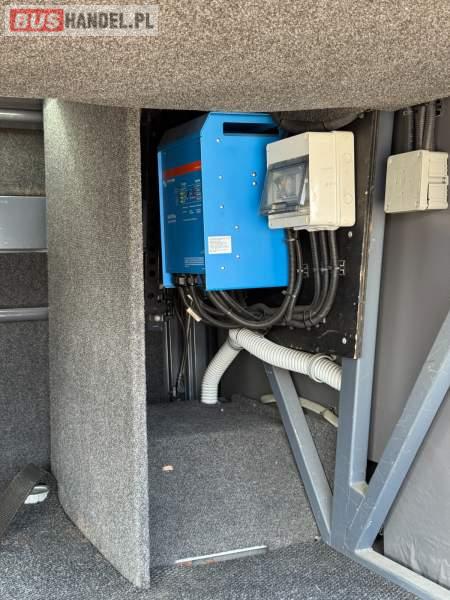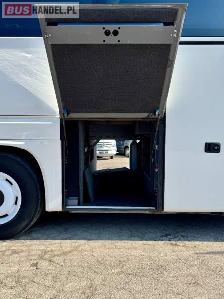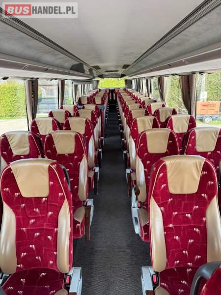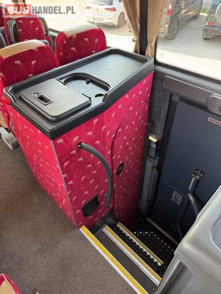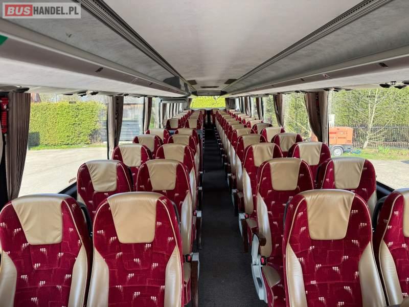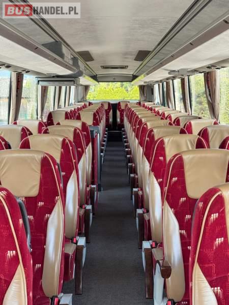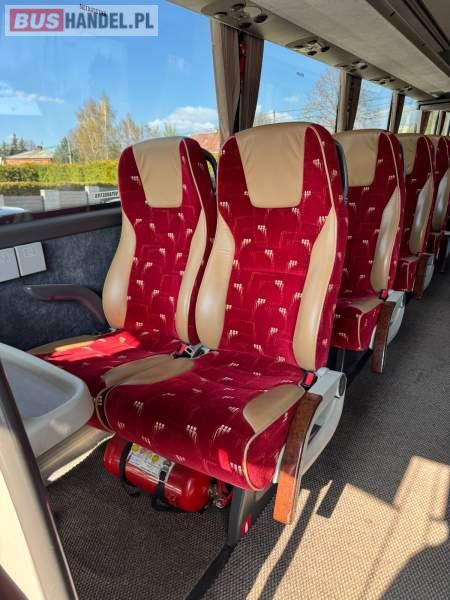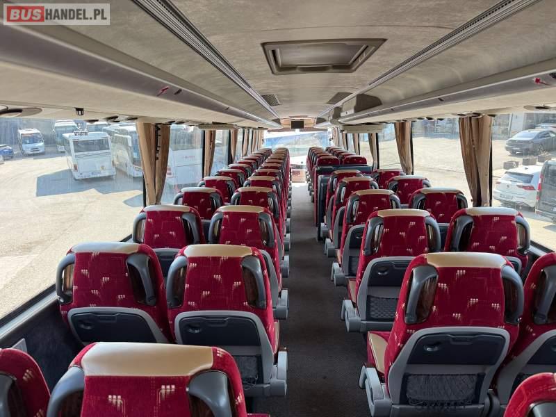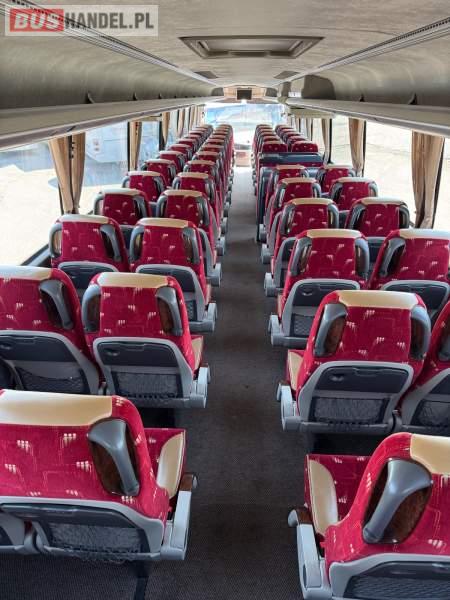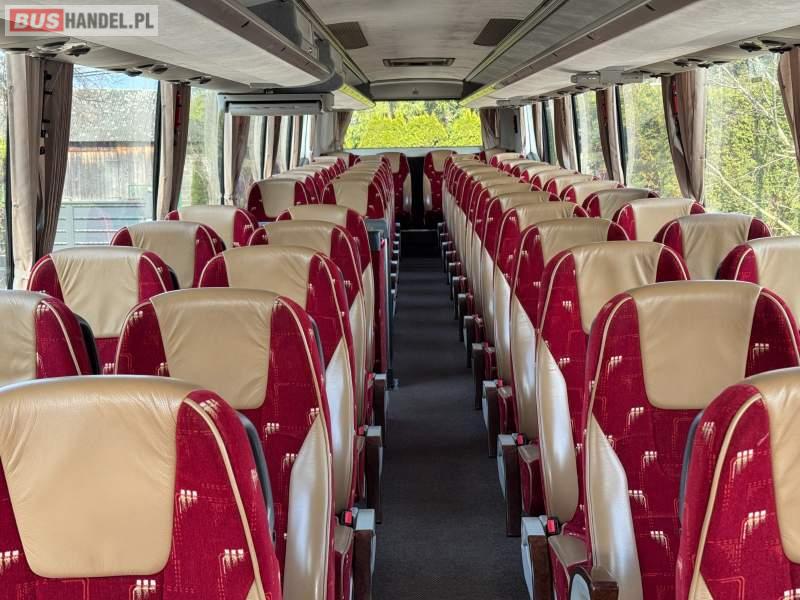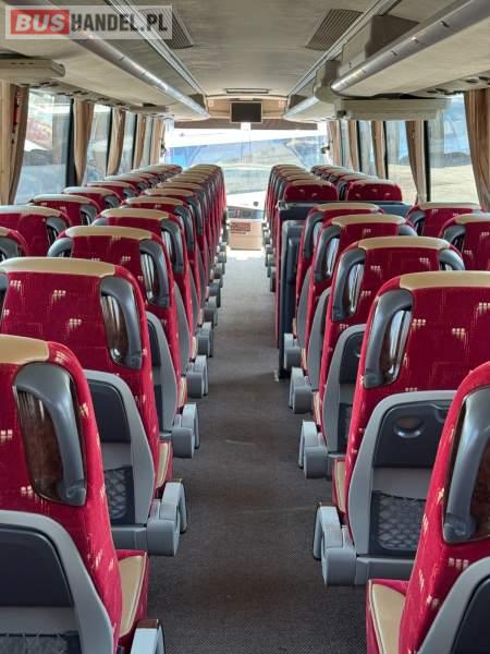: klimatyzacja, WC, lodówka, caffebar, kabina sypialna, oświetlenie indywidualne, nawiewy dyszowe, fotele odchylane, podnóżki, stoliczki, siateczki, ABS, ASR, tempomat, retarder, mikrofon, radio, fotele odchylane i rozsuwane, sejf, regulacja wysokości nadwozia, centralny zamek, podwójne szyby boczne, wspomaganie kierownicy, elektryczne lusterka, ogrzewanie stacjonarne, DVD, ESP