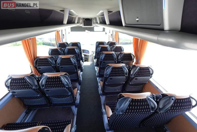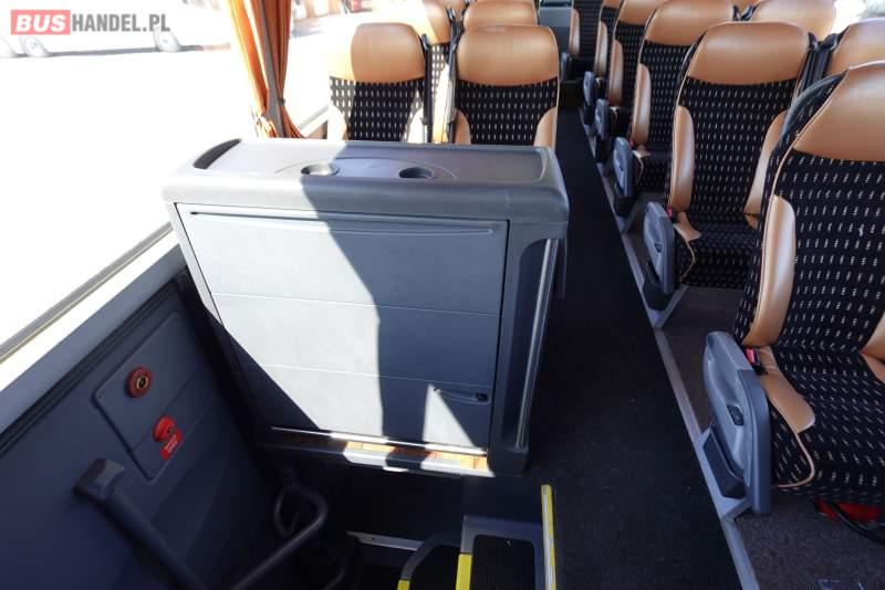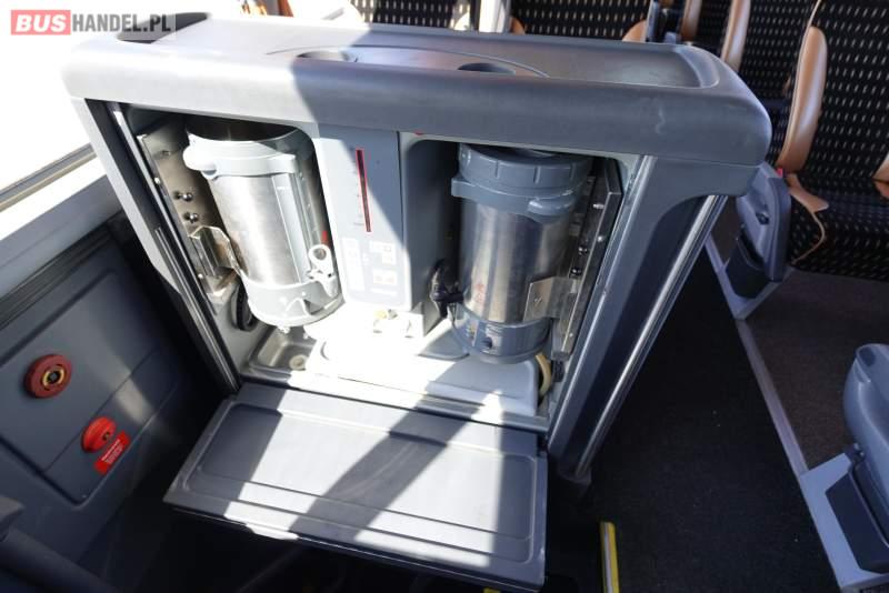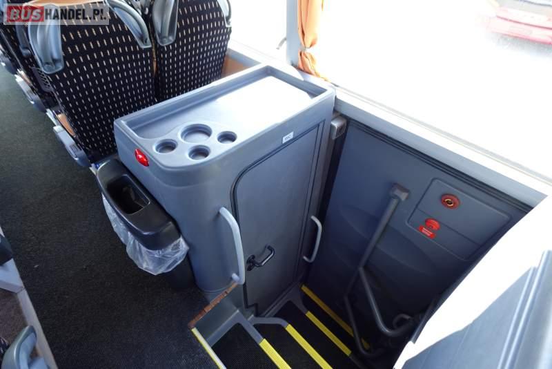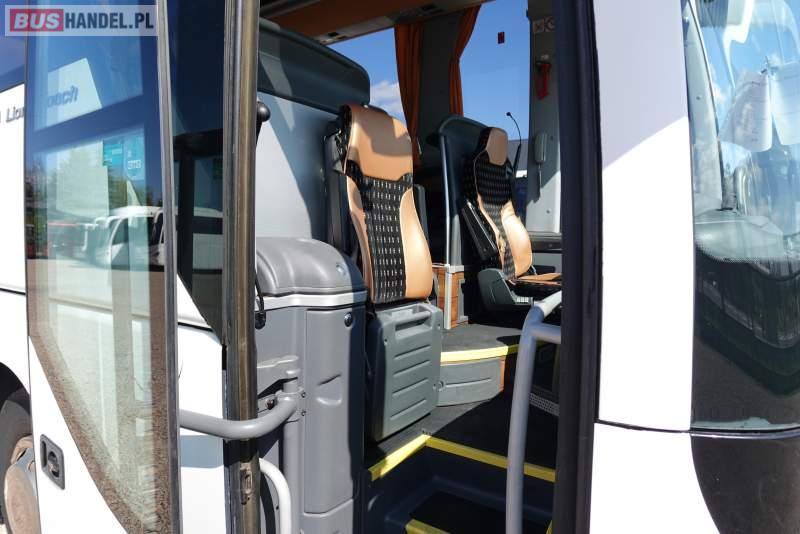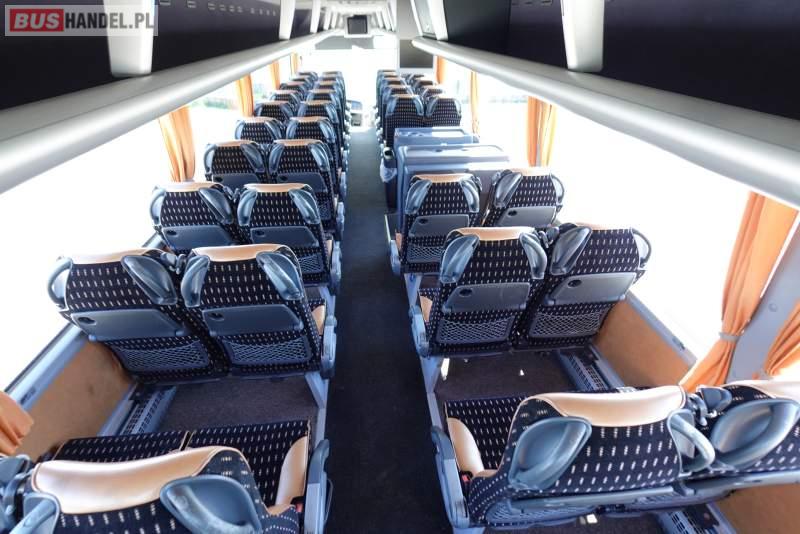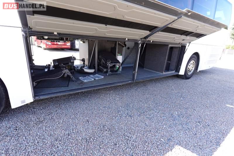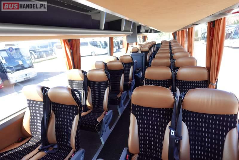 : video, WC, lodówka, caffebar, kabina sypialna, oświetlenie indywidualne, nawiewy dyszowe, siateczki, ABS, ASR, tempomat, retarder, telefon, CD, podnóżki, stoliczki, mikrofon, klimatyzacja, radio, regulacja wysokości nadwozia, centralny zamek, podwójne szyby boczne, wspomaganie kierownicy, elektryczne lusterka, fotele odchylane i rozsuwane, DVD, ogrzewanie stacjonarne, ESP