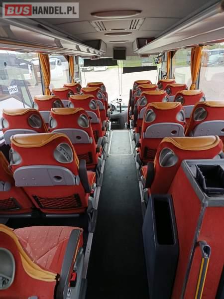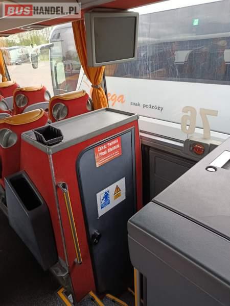 : WC, lodówka, fotele odchylane, oświetlenie indywidualne, nawiewy dyszowe, siateczki, ABS, ASR, tempomat, retarder, stoliczki, mikrofon, klimatyzacja, radio, centralny zamek, podwójne szyby boczne, wspomaganie kierownicy, elektryczne lusterka, ogrzewanie stacjonarne, ESP