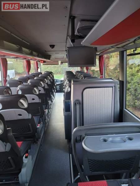 : WC, lodówka, caffebar, oświetlenie indywidualne, nawiewy dyszowe, siateczki, ABS, ASR, tempomat, retarder, CD, podnóżki, stoliczki, mikrofon, klimatyzacja, radio, podwójne szyby boczne, wspomaganie kierownicy, elektryczne lusterka, fotele odchylane i rozsuwane, DVD, ogrzewanie stacjonarne