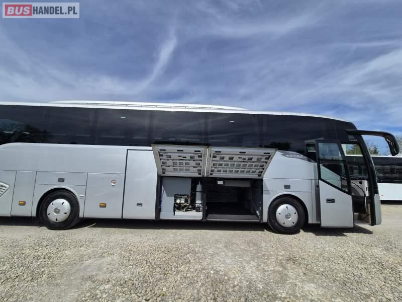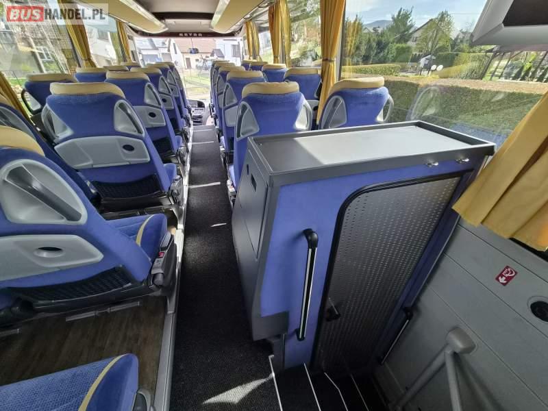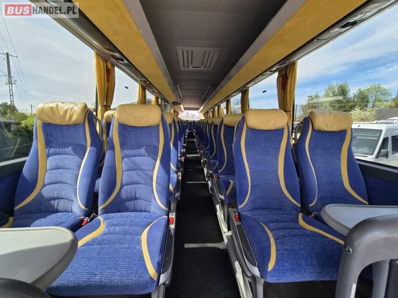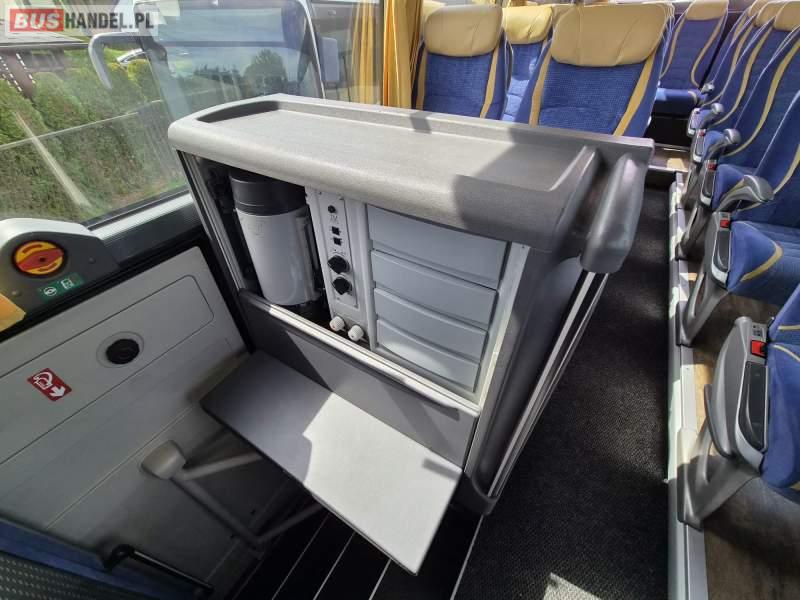 : video, WC, lodówka, caffebar, oświetlenie indywidualne, nawiewy dyszowe, siateczki, ABS, ASR, tempomat, retarder, nawigacja, CD, podnóżki, stoliczki, mikrofon, klimatyzacja, radio, regulacja wysokości nadwozia, centralny zamek, podwójne szyby boczne, wspomaganie kierownicy, elektryczne lusterka, fotele odchylane i rozsuwane, DVD, ogrzewanie stacjonarne, ESP