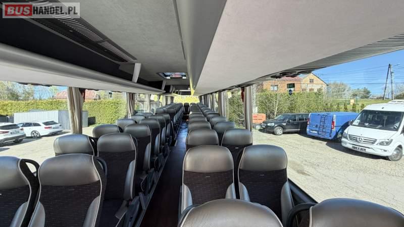 : WC, lodówka, kabina sypialna, fotele odchylane, oświetlenie indywidualne, nawiewy dyszowe, siateczki, ABS, ASR, tempomat, retarder, podnóżki, stoliczki, mikrofon, klimatyzacja, radio, regulacja wysokości nadwozia, centralny zamek, podwójne szyby boczne, wspomaganie kierownicy, elektryczne lusterka, fotele odchylane i rozsuwane, DVD, ogrzewanie stacjonarne, ESP