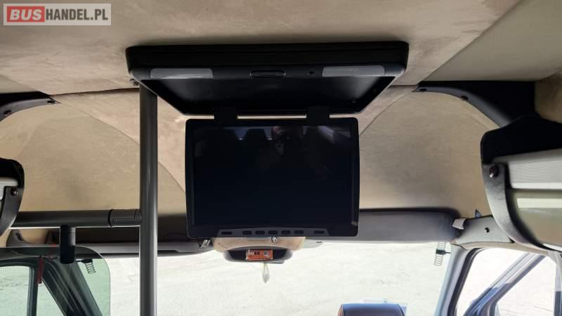 : fotele odchylane, oświetlenie indywidualne, nawiewy dyszowe, siateczki, ABS, ASR, tempomat, retarder, podnóżki, stoliczki, klimatyzacja, radio, regulacja wysokości nadwozia, centralny zamek, podwójne szyby boczne, wspomaganie kierownicy, elektryczne lusterka, DVD, ogrzewanie stacjonarne